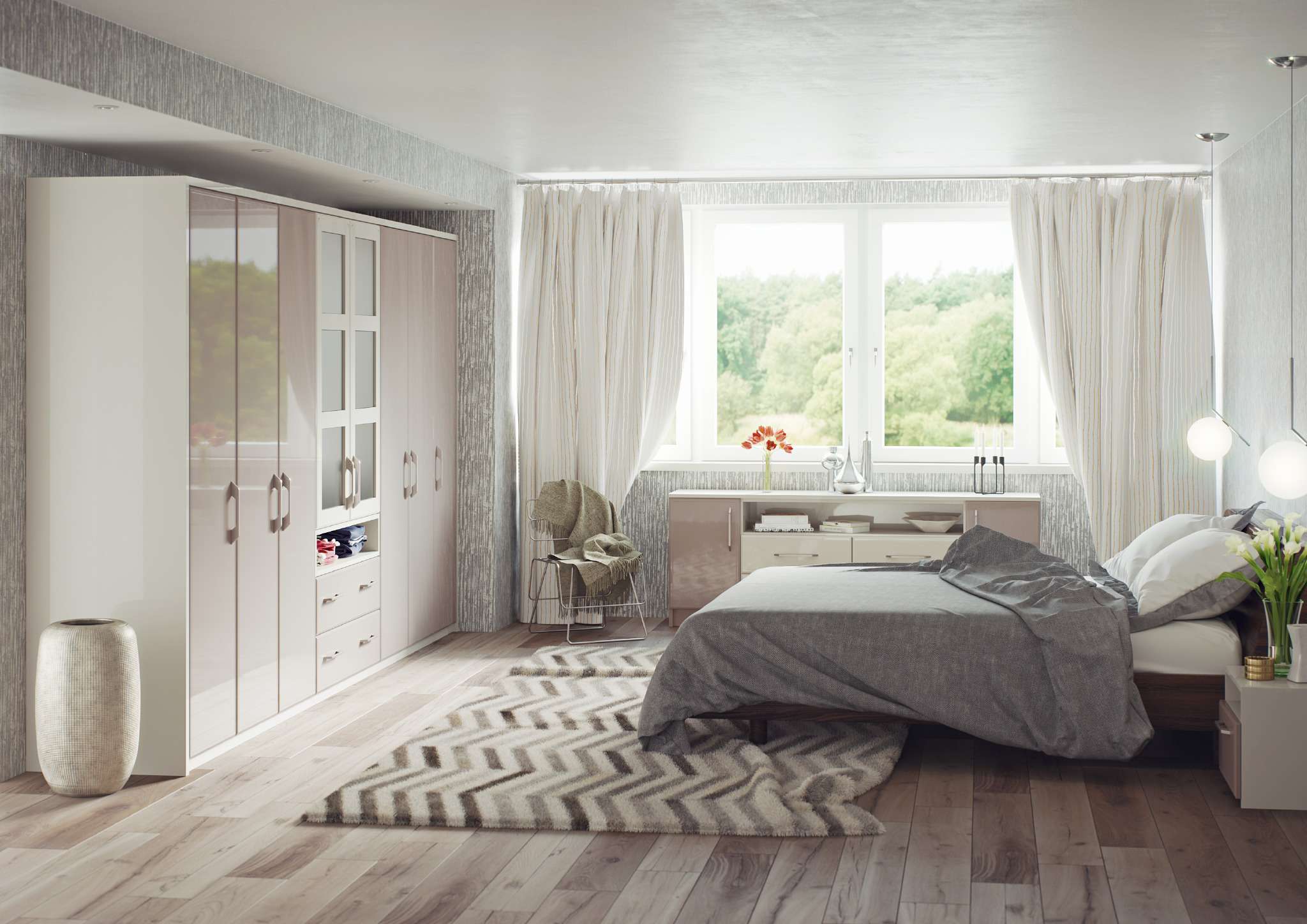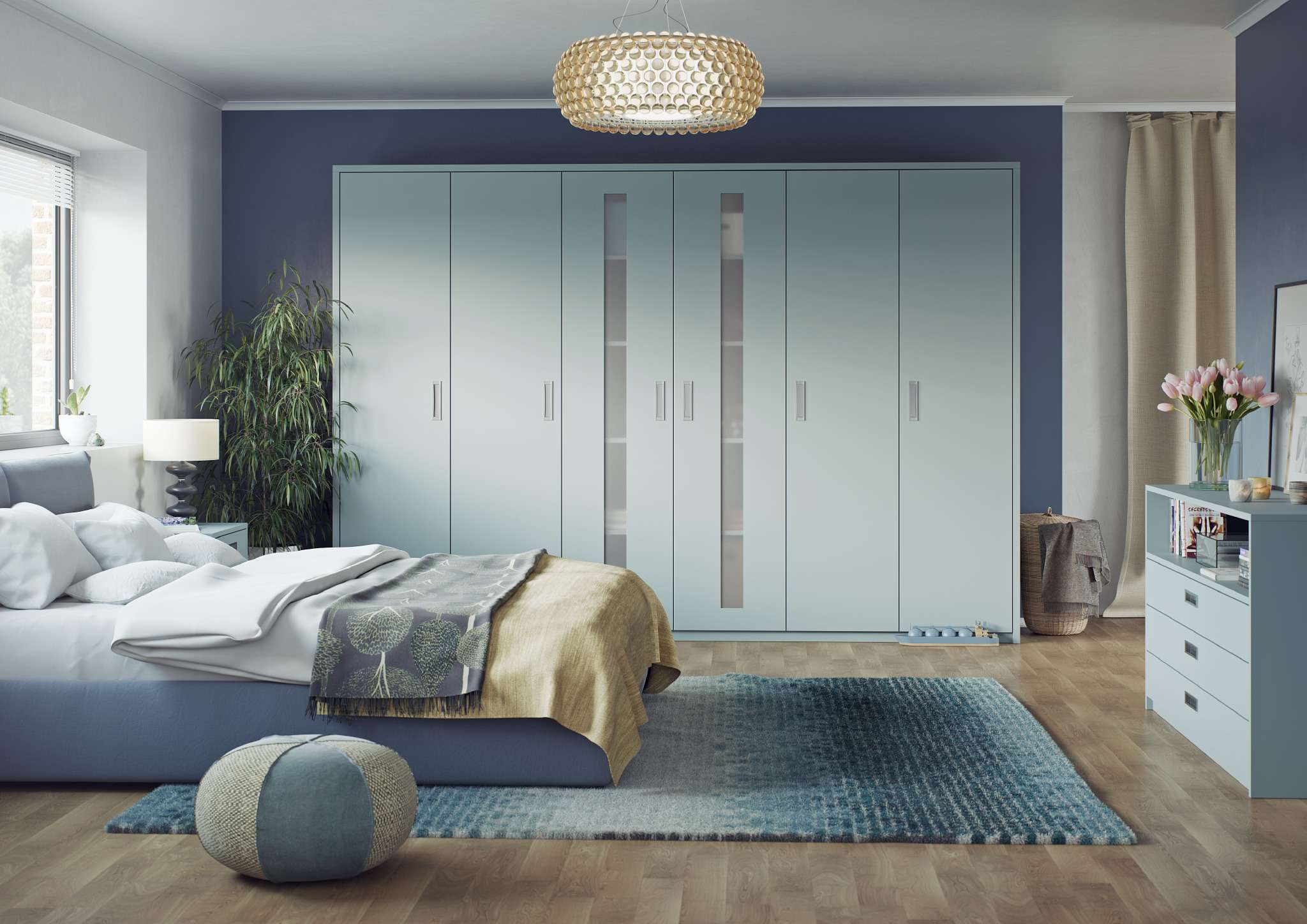 Creating a beautiful bedroom with either sliding or fitted bedroom doors means you can custom build your room and add customised matching fitted bedroom furniture.